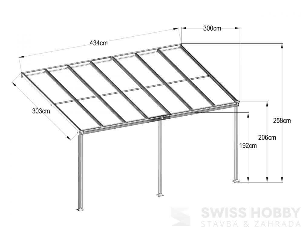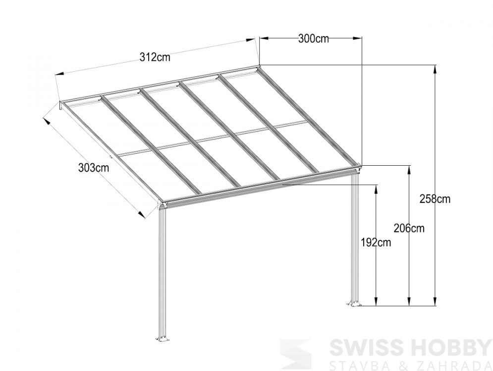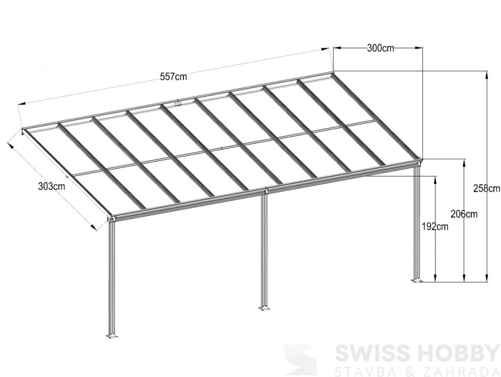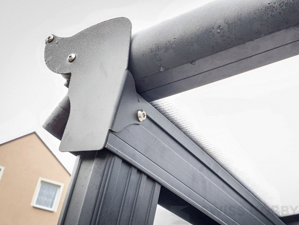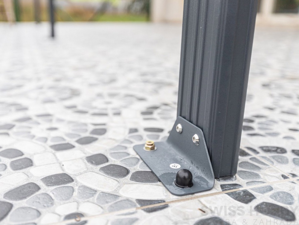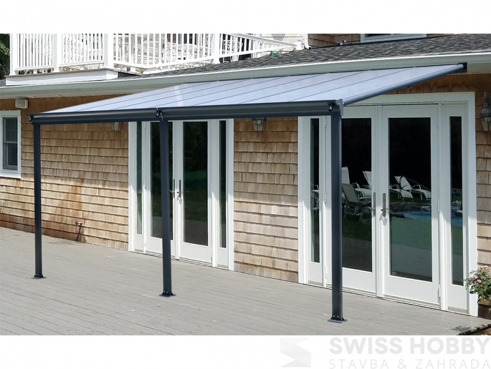 Hliníková pergola BW - Elegantní pergolu BW dodáváme v antracitové barvě s čirým či bronzovým polykarbonátem. Pergola je vyrobena z robustních hliníkových profilů s barevnou povrchovou úpravou.. Zastřešení řešeno komůrkovým polykarbonátem tloušťky 6 mm.