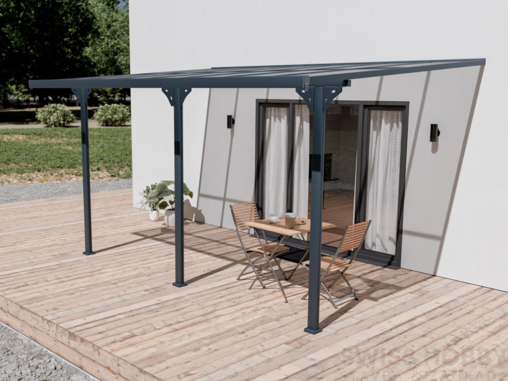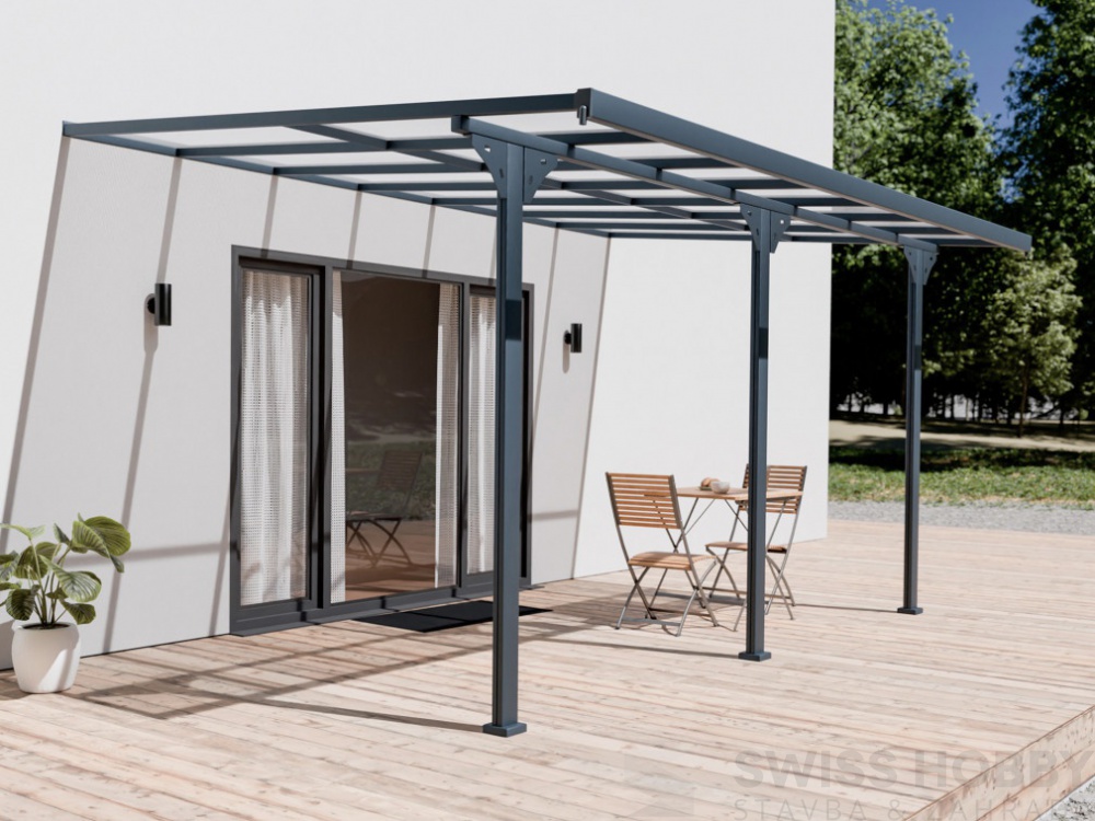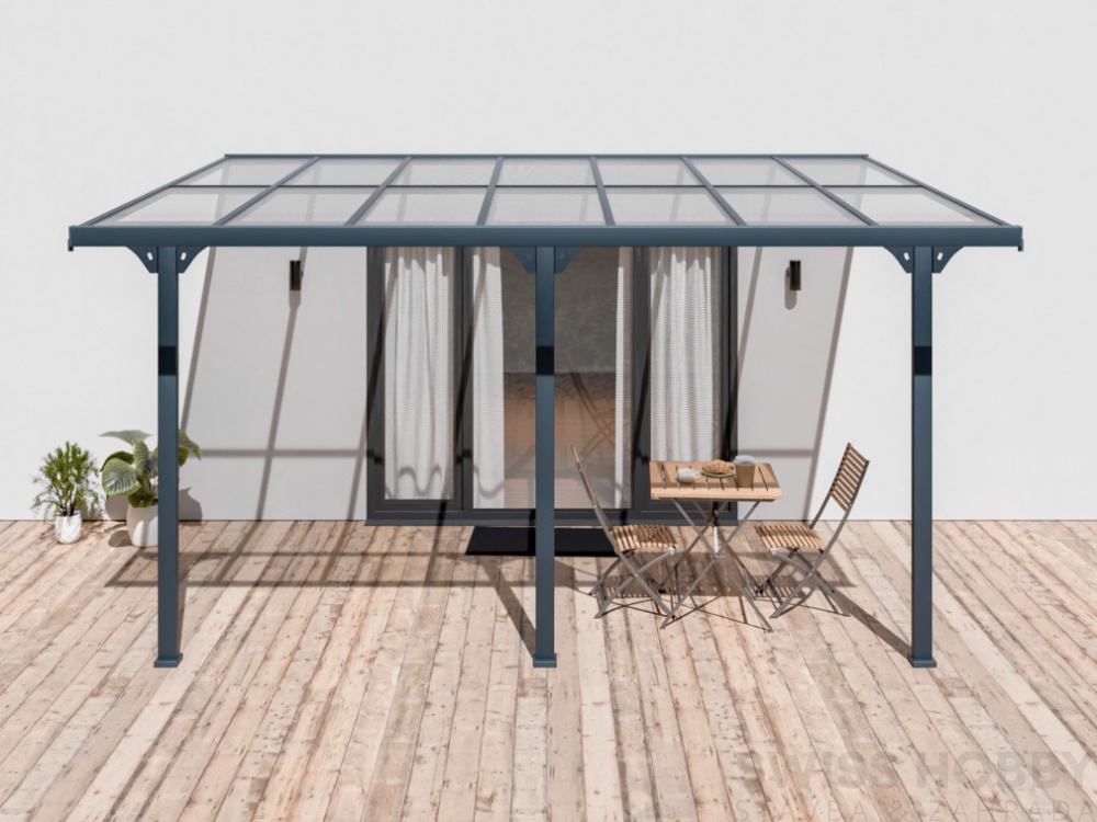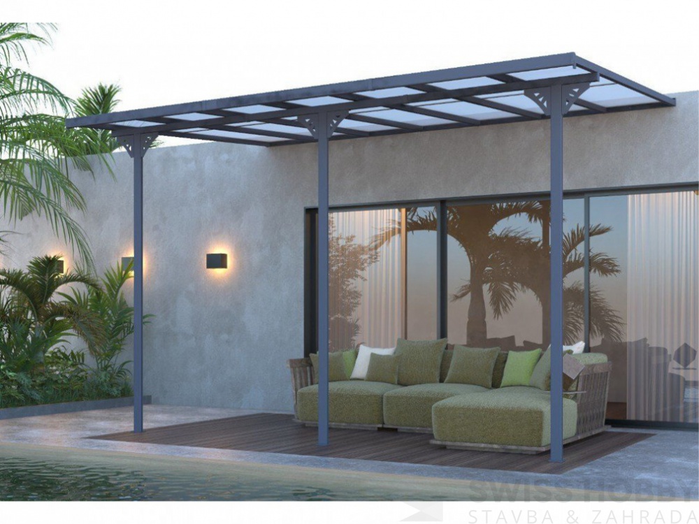 Hliníková pergola Vilste s nastavitelným sklonem střechy poskytuje zastřešení především pro terasy a venkovní posezení. Je tvořená konstrukcí z lakovaných hliníkových profilů a komůrkovými polykarbonáty o síle 6 mm s UV ochranou