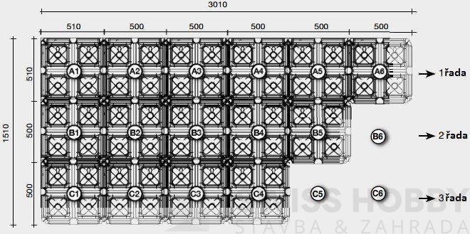Potřebný počet tvarovek vypočítáte dle vzorce: plocha x 4 (například: 20 m2 x 4 = 80 kusů IGLÚ)