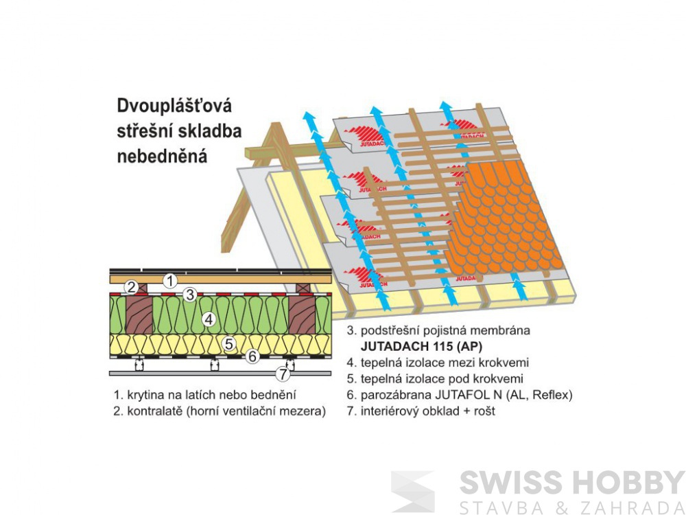 Lehká difúzní membrána pro šikmé střechy bez bednění a na vertikální konstrukce stěn s integrovaným samolepícím okrajem pro rychlou větrotěsnou pokládku. Je plně recyklovatelná.