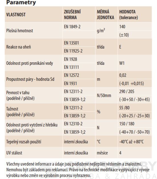 Vysoce difúzní podstřešní membrána sloužící k ochraně podkrovních prostor a tepelných izolací, určená na bedněné i nebedněné šikmé střešní konstrukce.