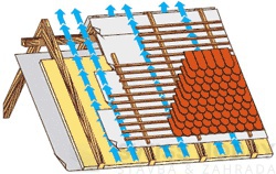 Nízkoparopropustná podstřešní fólie sloužící k ochraně podkrovních prostor a tepelných izolací.