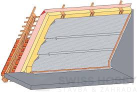 • přes difúzní podstřešní fólii může tak být odvedeno více vodních par, než kolik jich může skrz parozábranu do tepelné izolace proniknout, zamezí se tak tvorbě spontánní kondenzace uvnitř tepelné izolace a její funkčnost zůstane plně zachována.