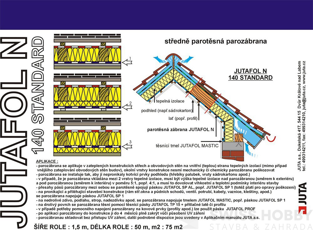 • fólie se používá v kombinaci s podstřešní difúzní fólií z vnější strany tepelné izolace