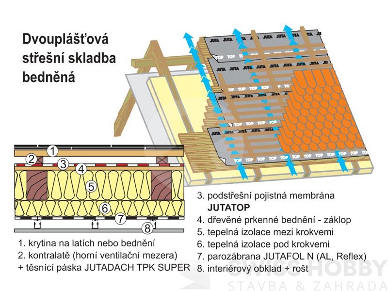 • max. osová rozteč krokví je 1200 mm (u nebedněných střech)