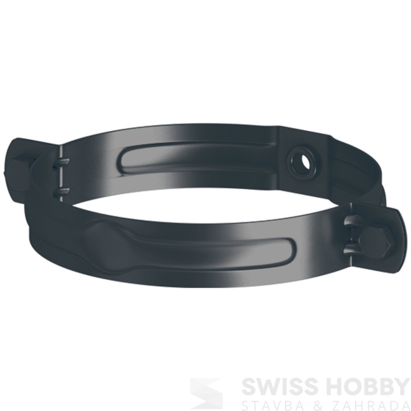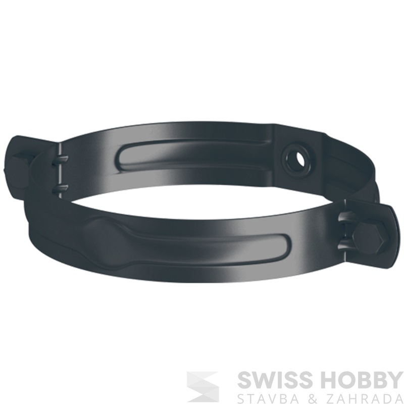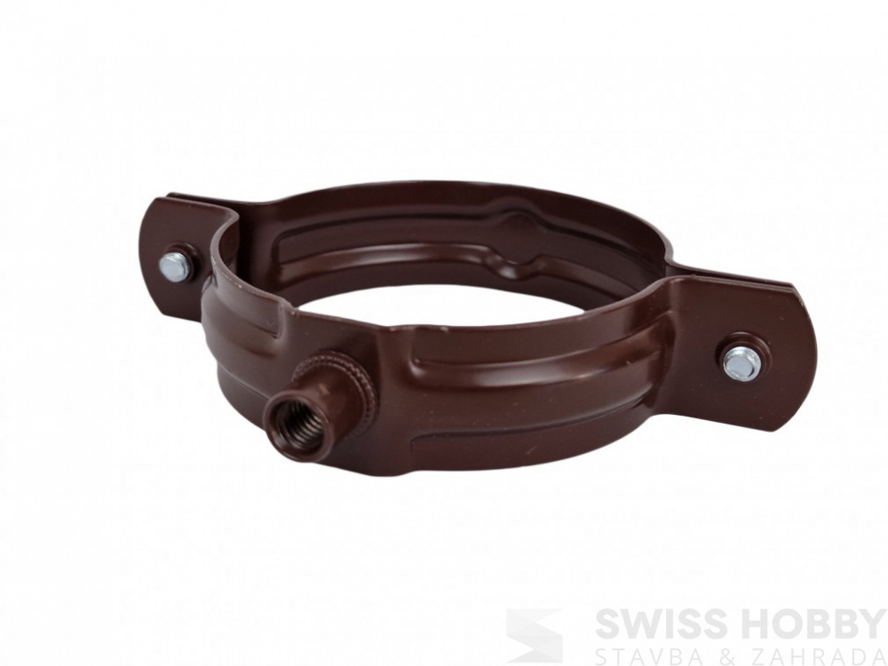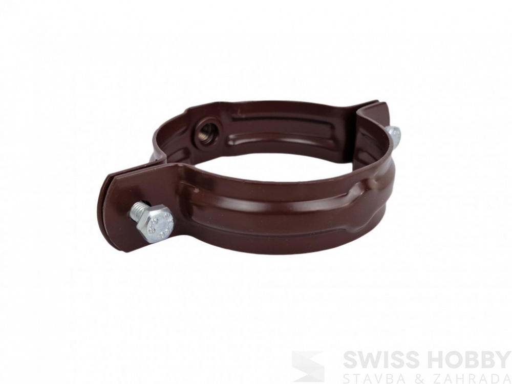 Lakovaná objímka svodu 80 mm vyrobená z kvalitního plechu je vhodná pro okapový systém 250 / 80 mm, disponuje odolností vůči mechanickému poškození, povětrnostním vlivům i korozi a slouží k pevnému přichycení svodu ke zdi.