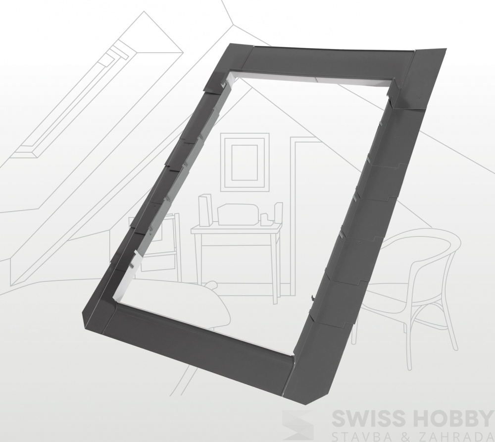 Těsně přiléhající spodní část a segmentální postranní části lemování umožňují montáž výrobku na všechny typy střešních krytin, jako je přírodní břidlice, umělá břidlice či šindele.(pouze v případě české šablony na koso použijte lemování pro profilované krytiny).