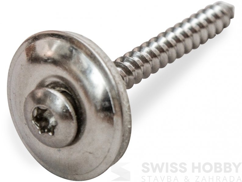 Kvalitní vrut (včetně samotěsnící podložky) primárně určený k přichycení průhledné střešní krytiny do střešních latí. Jedno balení obsahuje 20 nebo 100 ks.