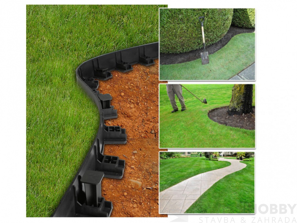 Plastový obrubník pro tzv. neviditelné ohraničení trávníku, chodníků, nebo zakončení zámkové dlažby.