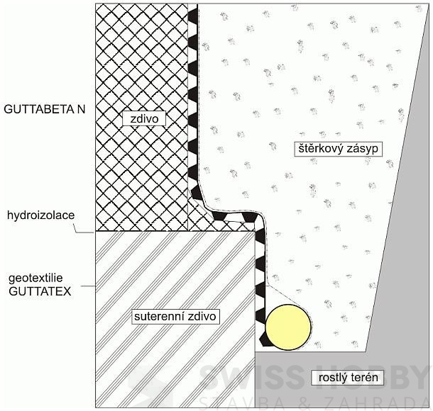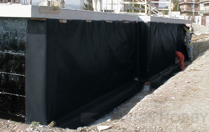 Protivlhkostní a drenážní nopová folie Guttabeta N. Použitý materiál HDPE a profil, dávají fólii unikátní vlastnosti, které je možno výhodně využít v řadě konstrukcí staveb.