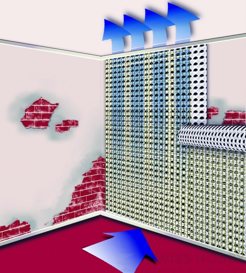 Nopová fólie S je z vnitřní strany opatřená plastovou mřížkou umožňující provedení omítky. Je vhodná zejména pro sanaci vnitřních stěn.
