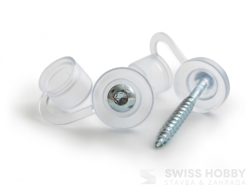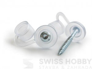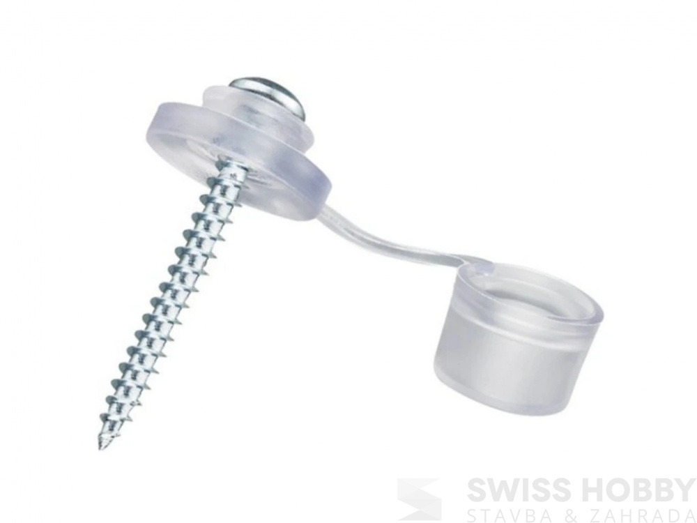 K přichycení průhledné střešní krytiny do střešních latí. Včetně podložky a záklopné hlavy. Spotřeba min. 12 ks/m2