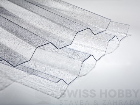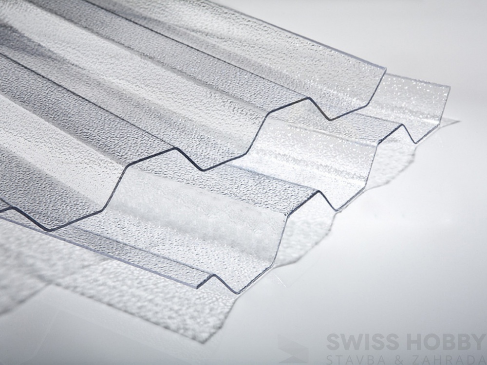 Prosvětlovací trapézová polykarbonátová deska Palram Suntuf 2UV s jemnou krupičkovou strukturou ideální pro zastřešení pergol, přístřešků a zimních zahrad.