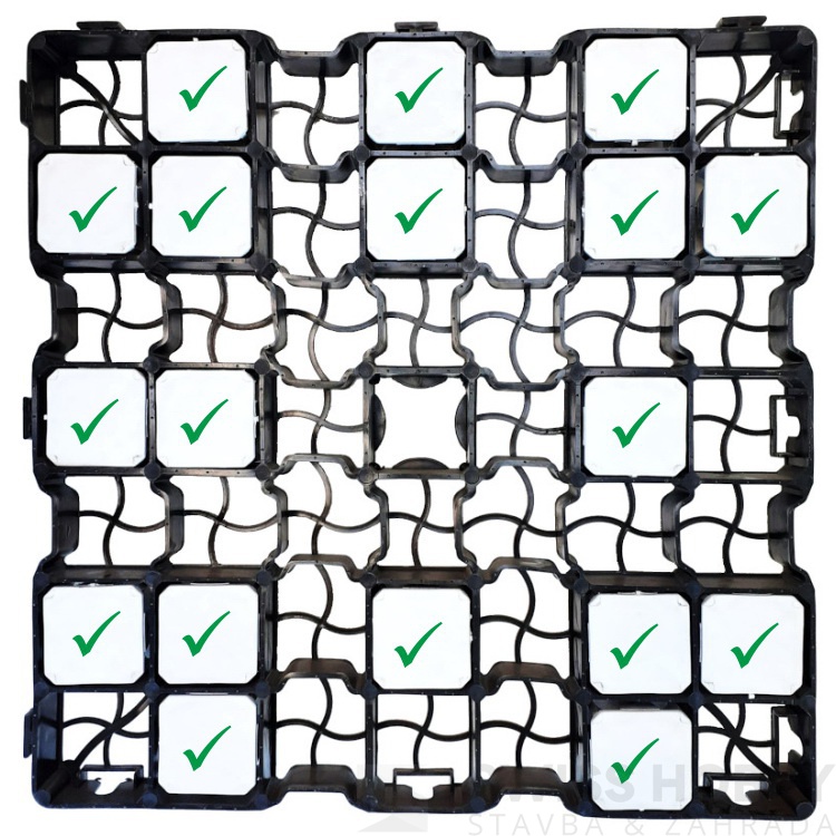 Plastový bod pro vytýčení parkovacích míst v zatravňovacích dlažbách geoSYSTEM GE30, GE40, GE40 max A GE50 max. Zatravňovací dlažba tak může sloužit jako netradiční organizované parkoviště.