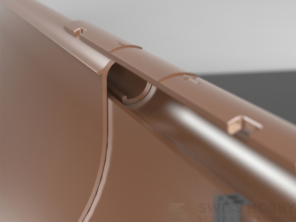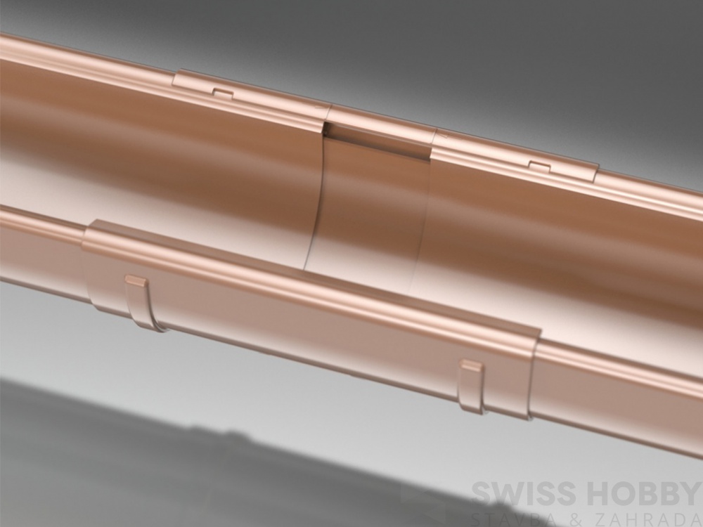 Plastová spojka žlabu PVC 75 mm určená pro okapový systém 75 / 63 mm, je odolná vůči UV záření a korozi, bezúdržbová, barvostálá a její montáž je velice jednoduchá.