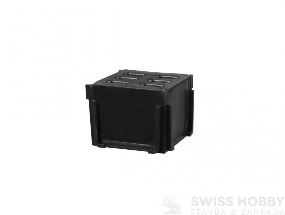 Plastová spojka žlabu s plastovou mříží (130 x 130 x 105 mm)