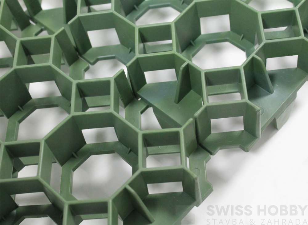 Robustní plastová tvárnice vhodná pro zpevnění travnatých i štěrkových povrchů. Rozměr zatravňovací dlaždice je 47 x 47 cm s nosností až 400 tun.