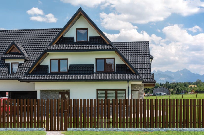 Plechová plotovka Forte jednostranná oblá - hnědá RAL 8017 lesk