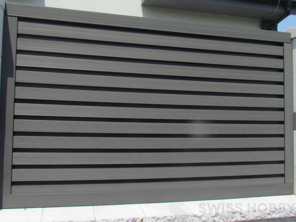 Skladebná výška jedné plotové desky je 20 cm. Doporučená maximální výška sestaveného WPC plotu je 200 cm (tj. až 10 desek na sobě).