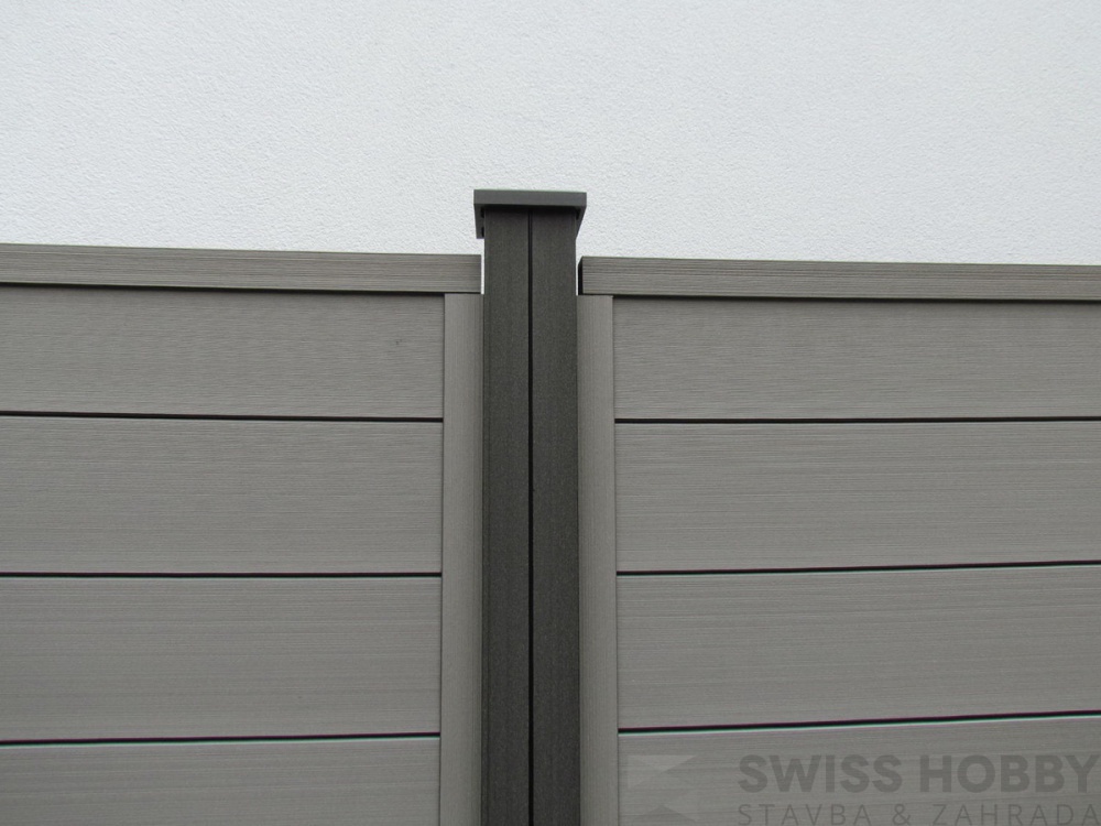 Pomocí  U-profilů  mohou být plotové desky upevněny ke sloupku ve 4 směrech. Sloupek má průřez 9 x 9 cm.