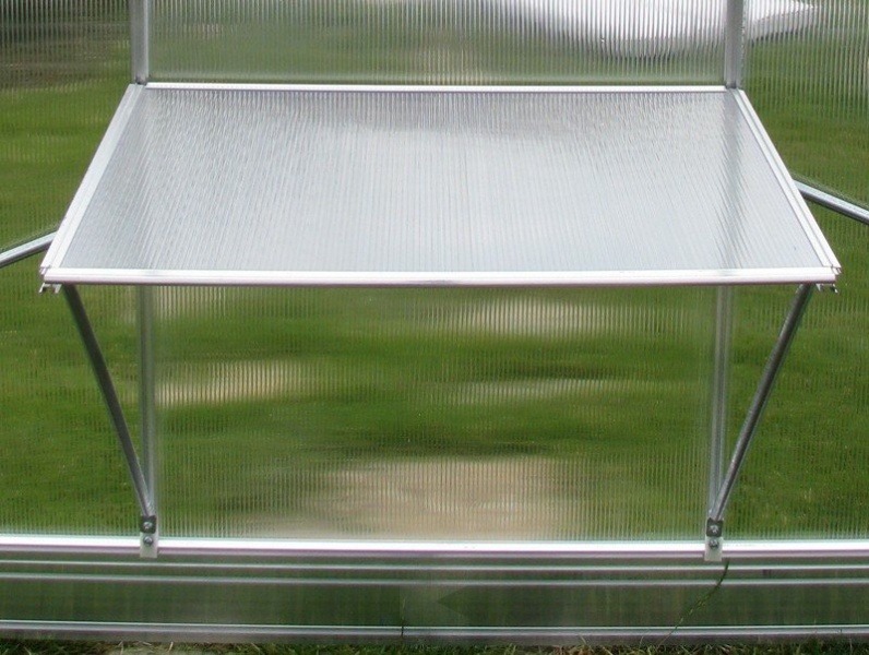 Polička z hliníkového rámu a 6 mm dutinkového polykarbonátu. Je možné ji použít do modelů House, Standard a Classic značky Covernit