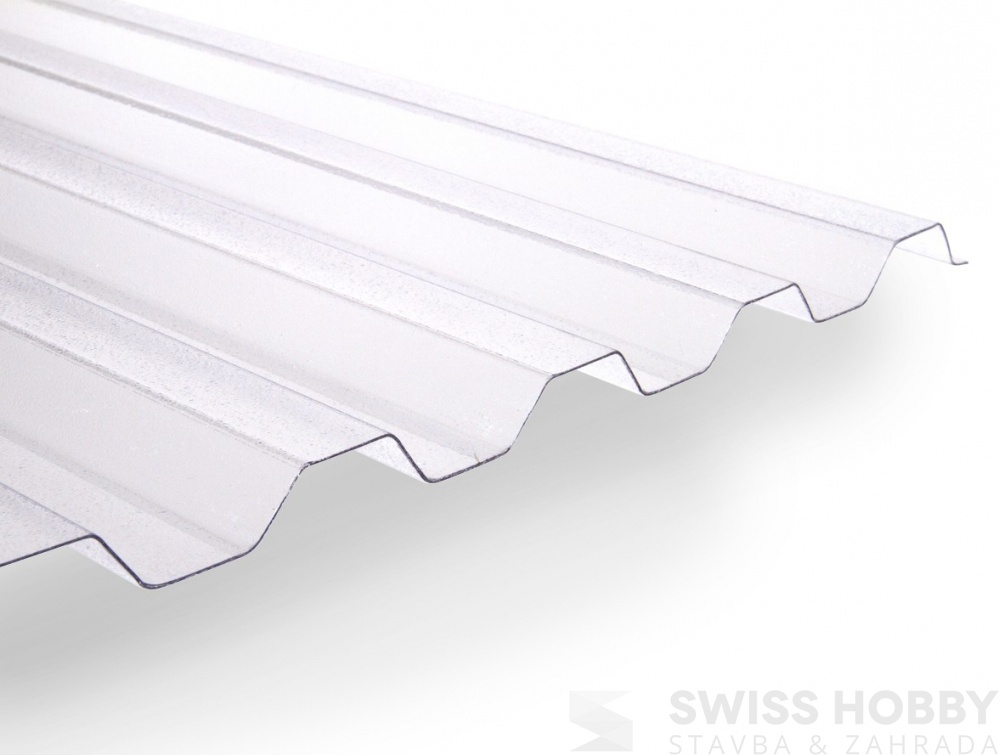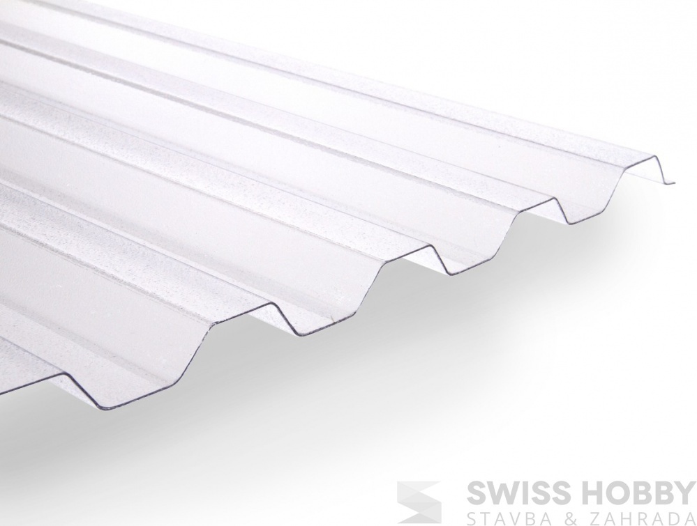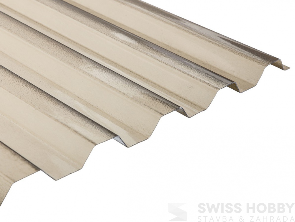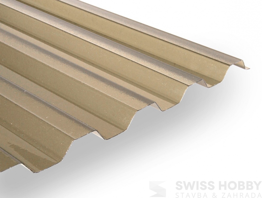 Prosvětlovací trapézové desky s jemnou strukturou vyrobené z vysoce odolného polykarbonátu. Záruka 10 let na krupobití. Spodní strana desky je opatřena jemnou strukturou pro rozptyl slunečních paprsků.