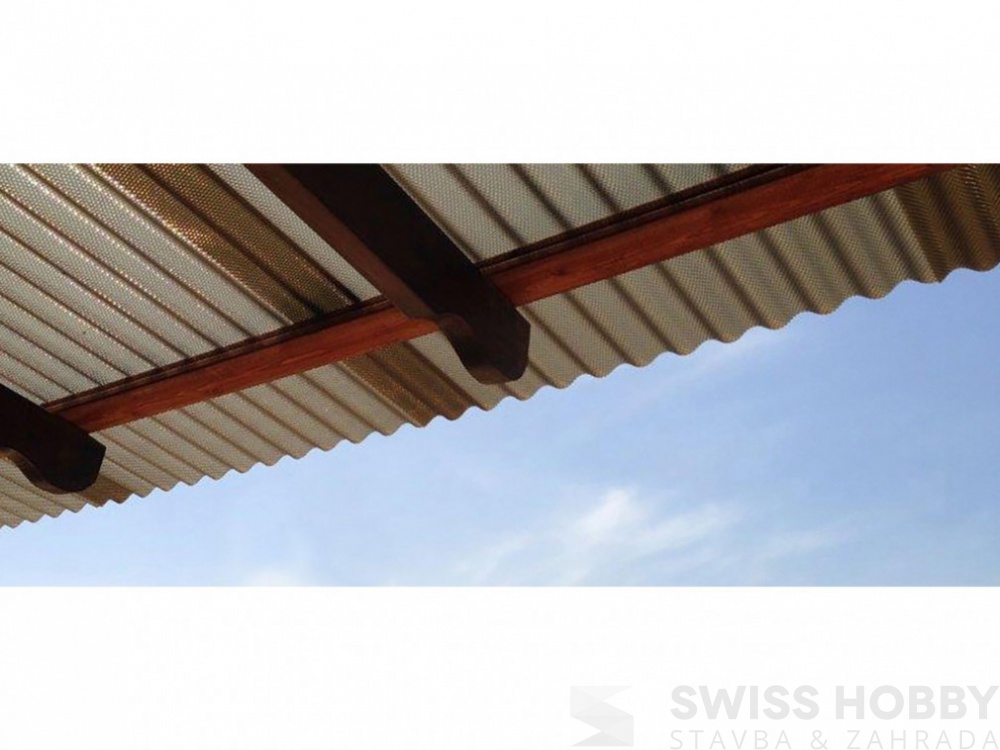 Zesílené polykarbonátové desky 2,8 mm s diamantovou strukturou a 100 % rozptylem světla. Ideální pro pergoly, přístřešky, altány, terasy atd.