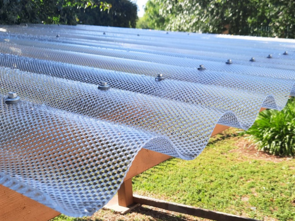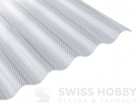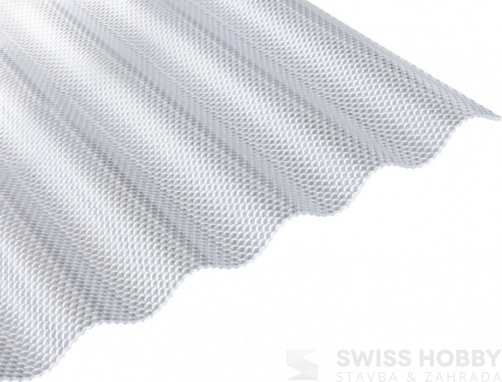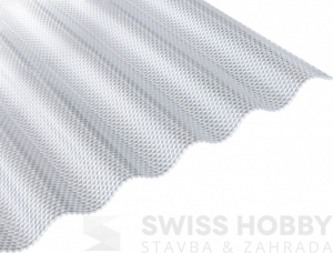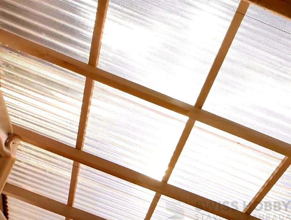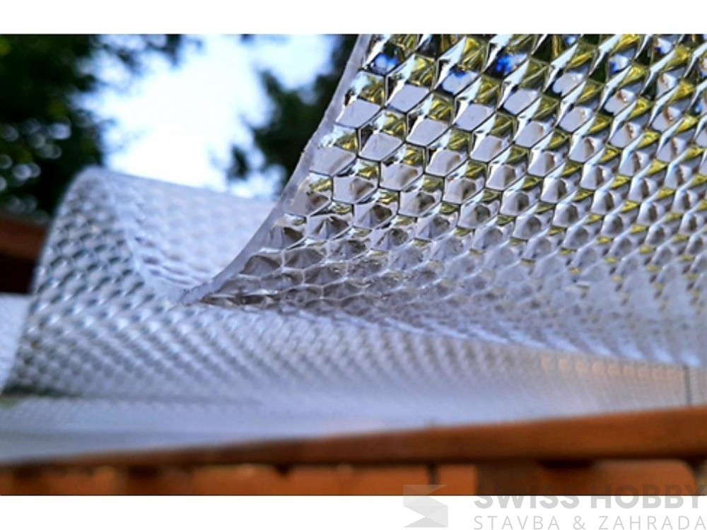Zesílené polykarbonátové desky 2,8 mm s diamantovou strukturou a 100 % rozptylem světla. Ideální pro pergoly, přístřešky, altány, terasy atd.