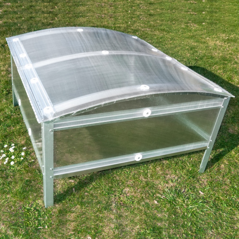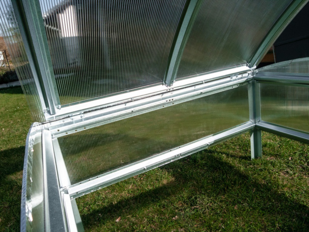 Polykarbonátový pařník Covertec Grow má díky své konstrukci výborné tepelně izolační vlastnosti a je ideální pro ochranu rostlin před jarními a přízemními mrazíky, jejich předpěstování a také pěstování menších teplomilných rostlin. Toto pařeniště disponuje pozinkovaným rámem tvořeným z 1 mm tlustých profilů, které vynikají svou nízkou váhou a dlouhou životností. Stěny pařníku tvoří 4 mm tlusté polykarbonátové desky, které jsou mechanicky odolné například vůči běžnému krupobití a také jsou odolné vůči nepříznivým účinkům UV záření. Pařník má odklápěcí stříšku, na kterou je možné instalovat univerzální automatický otvírač.