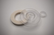 Přítlačná velkoplošná podložka z PP s polyuretanovým těsněním, tzv. "button". Určeno pro všechny tloušťky desek (nemá distanční váleček - nožičku)