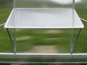 Polička do zahradních skleníků House, Classic a Standard značky Covernit. Vyrobená z hliníkového rámu a desky z polykarbonátu. Umožňuje pohodlné odkládání drobných a lehkých předmětů.