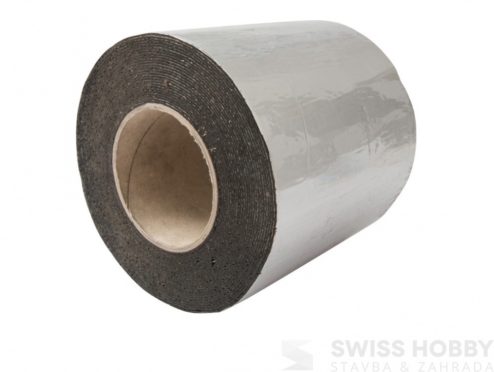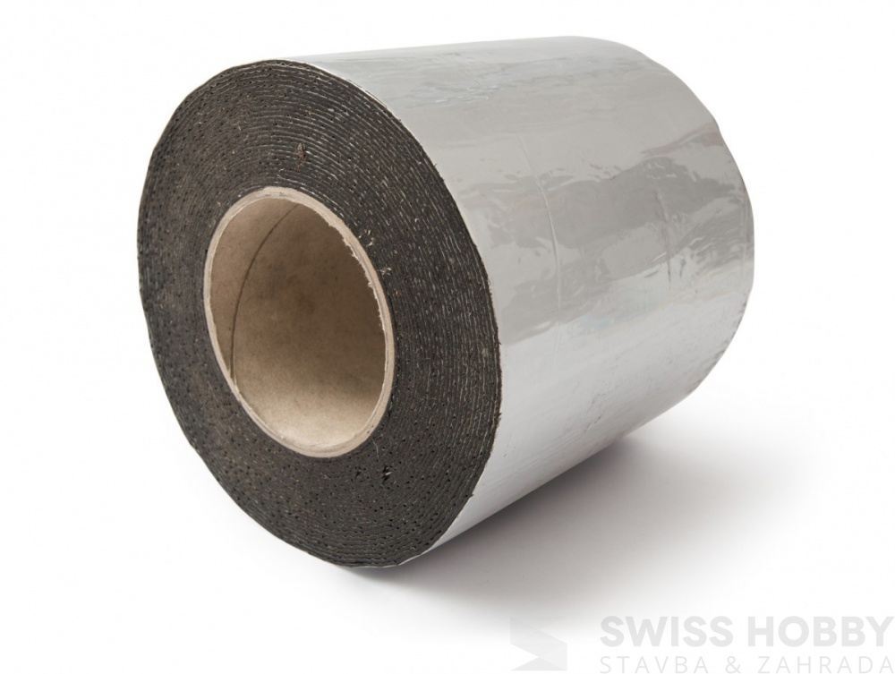 Víceúčelová butylkaučuková páska krytá kovovou fólií pro vodotěsné lemování prostupů, napojení na svislé stěny.
