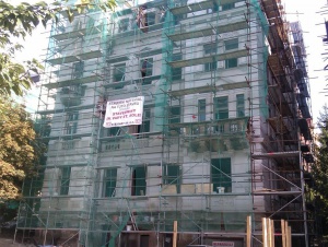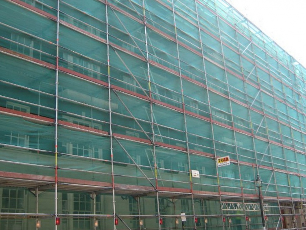 Ochranná síť na lešení s upevňovacími oky na obvodu. Pro jednotný vzhled po dobu zednických prací, tlumí sluneční svit a tím chrání před nadměrným vysycháním při provádění tenkovrstvých omítek, štukaterských prací apod. Síť na lešení chrání okolí lešení proti spadu materiálu a drobných předmětů. Dále slouží i jako stínící prvek zabraňující rychlému vysychání omítek.