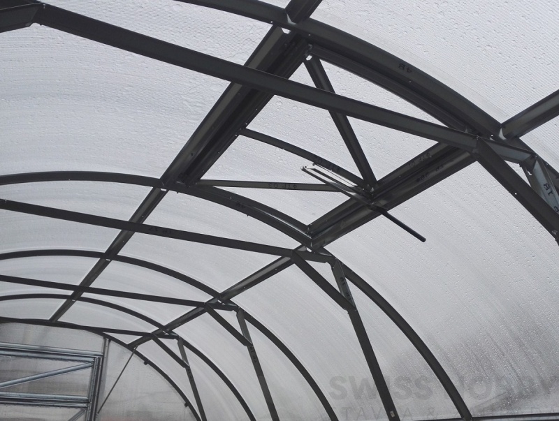 Obloukový skleník Trjoska je velmi odolný a osazený kvalitním německým dutinkovým polykarbonátem s UV povrchovou úpravou. Tato ochranná vrstva zamezuje stárnutí a křehnutí plastu na podkladě působení slunečního záření. Díky dobrým termoizolačním vlastnostem 4 mm silného polykarbonátu je prostředí uvnitř skleníku stabilní vůči výkyvům okolní teploty.