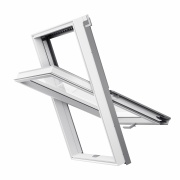 Energeticky mimořádně úsporné bezúdržbové střešní okno z PVC s trojsklem a zesíleným rámem.