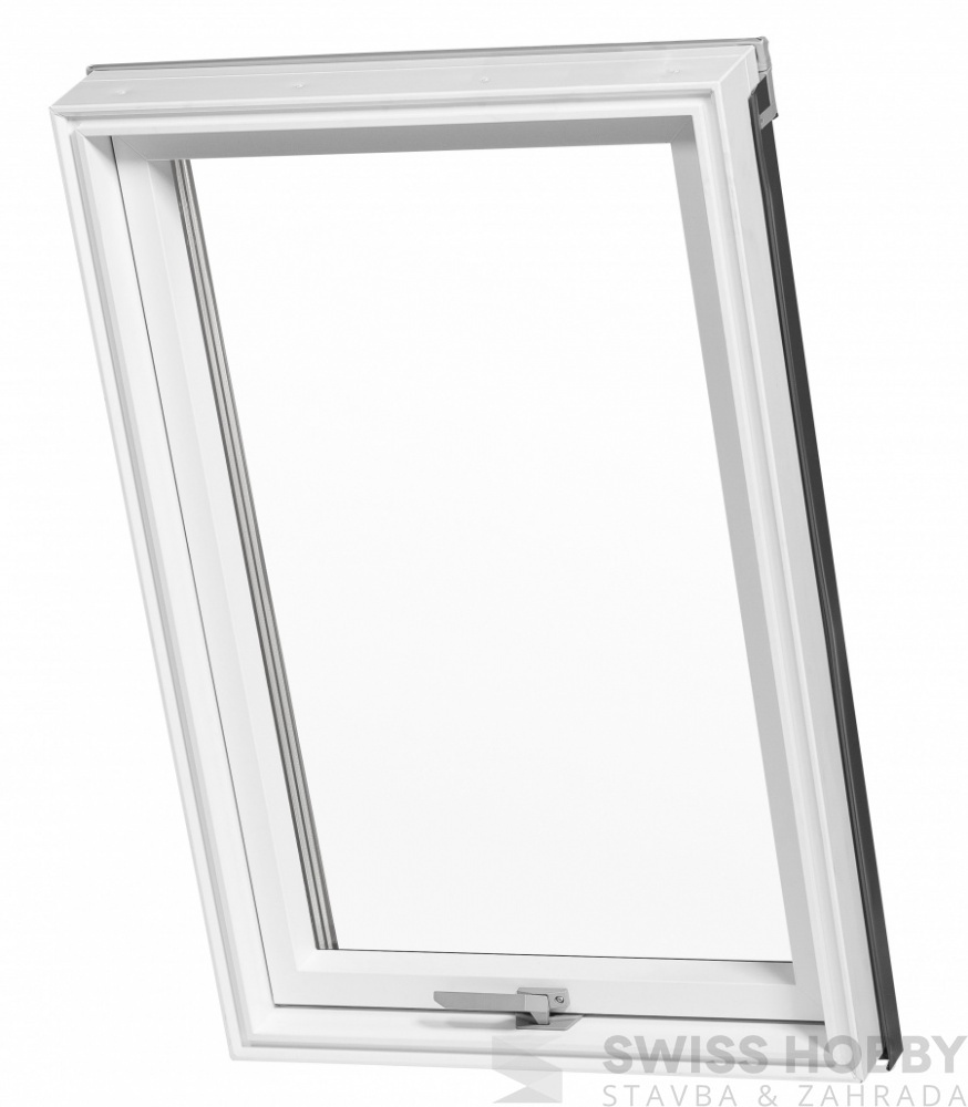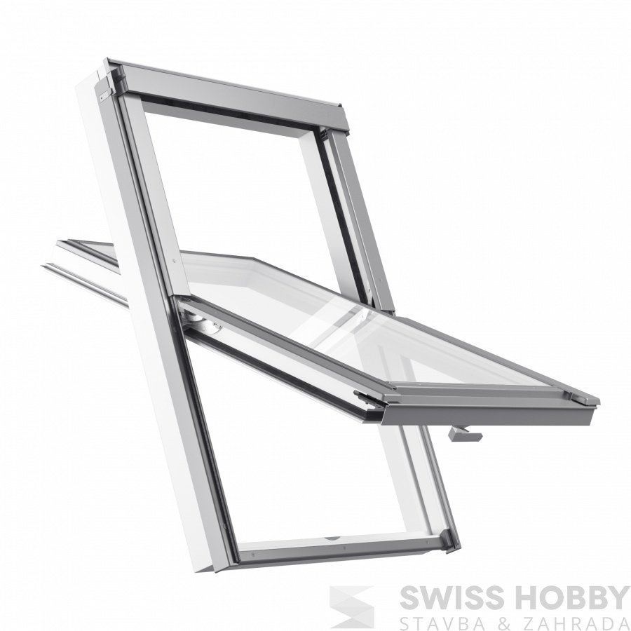 Energeticky mimořádně úsporné bezúdržbové střešní okno z PVC s trojsklem a zesíleným rámem.