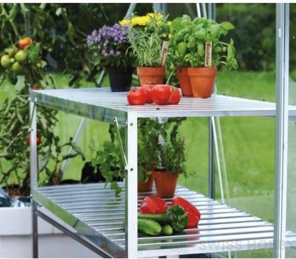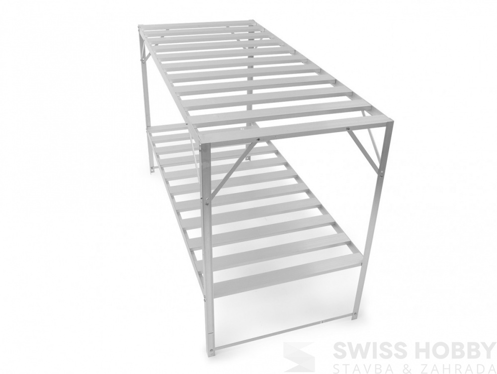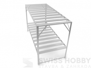 Stůl do skleníku je vhodný jako úložný prostor nejen pro předpěstování sazenic, ale také pro odkládání a skladování přípravků a prostředků jako jsou hnojiva, postřiky apod.