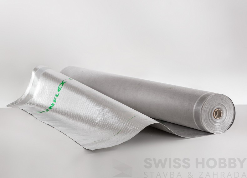 Vysoce reflexní difůzní membrána Sunflex Contact Pro, s metalickou vrstvou pro odraz sálavého tepla, s vysokou propustností vodních par, s dvojitou aplikační páskou pro snadnou aplikaci.