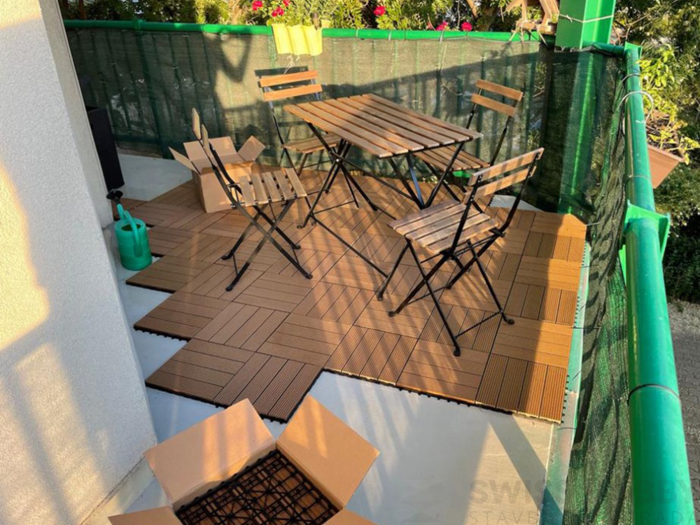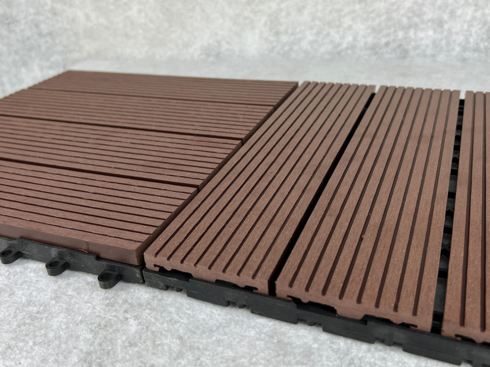Kvalitní dřevoplastová (WPC) terasová dlažba o rozměrech 300 x 300 mm. Materiál odolný hnilobě, má dlouhou životnost a je stálobarevný. Jednoduchá a rychlá pokládka.