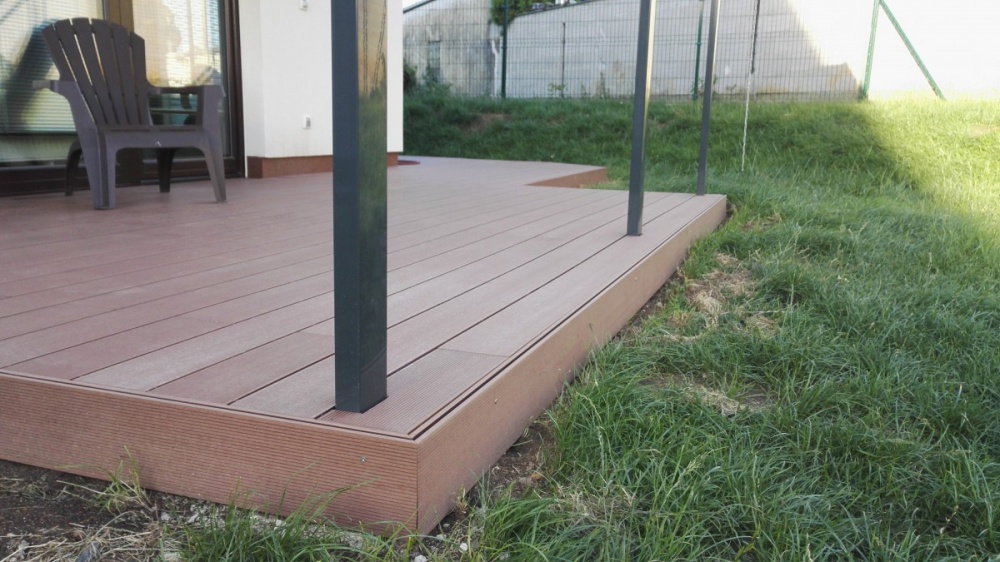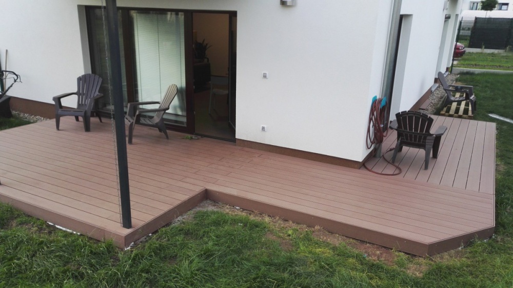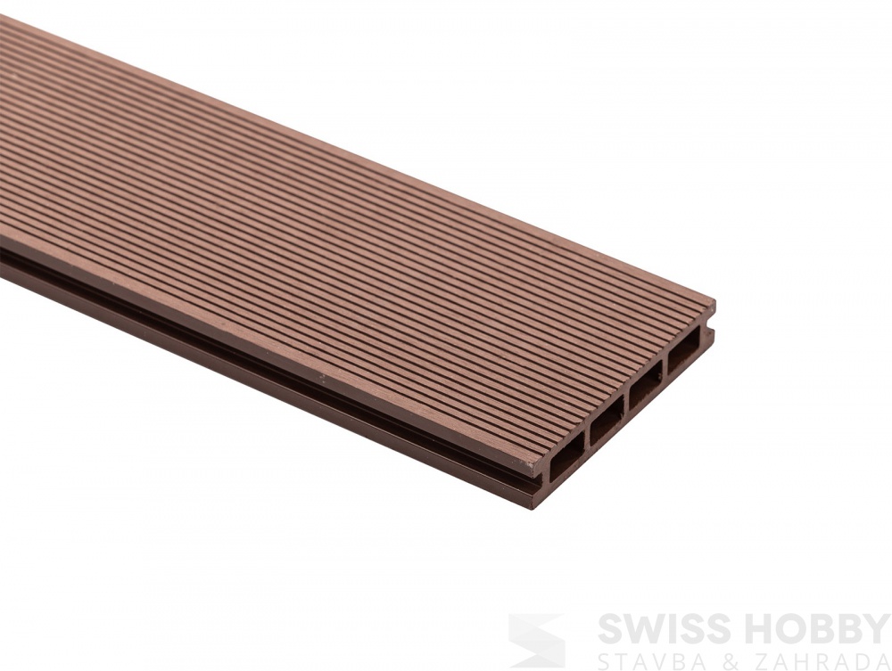 Terasové prkno z kvalitního WPC materiálu (60 % dřevo a 40 % polypropylen) s vysokou odolností a dlouhodobou životností.