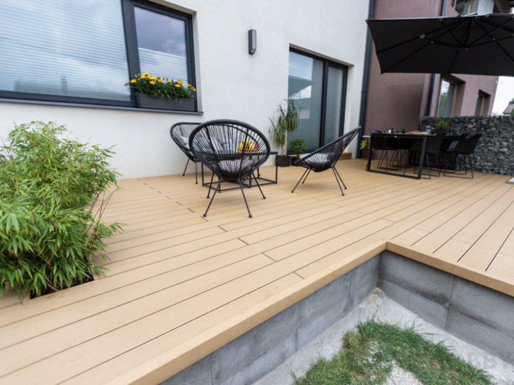 Univerzální exteriérová WPC prkna 2D z odolného dřevoplastu neboli WPC vytvoří bezúdržbovou, odolnou terasu bez třísek, příjemnou na dotek i na pohled.