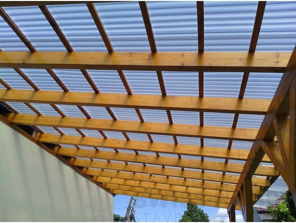 Pro zastřešení pergol polykarbonátem se nejčastěji používají dřevěné střešní latě, jejichž vrchní stranu je vhodné opatři bílím nátěrem, nebo hliníkovou páskou. Tímto se zamezí přehřívání desek a prodlouží se jejich životnost. Polykarbonátové desky se pmontují hladkou stranou nahoru.