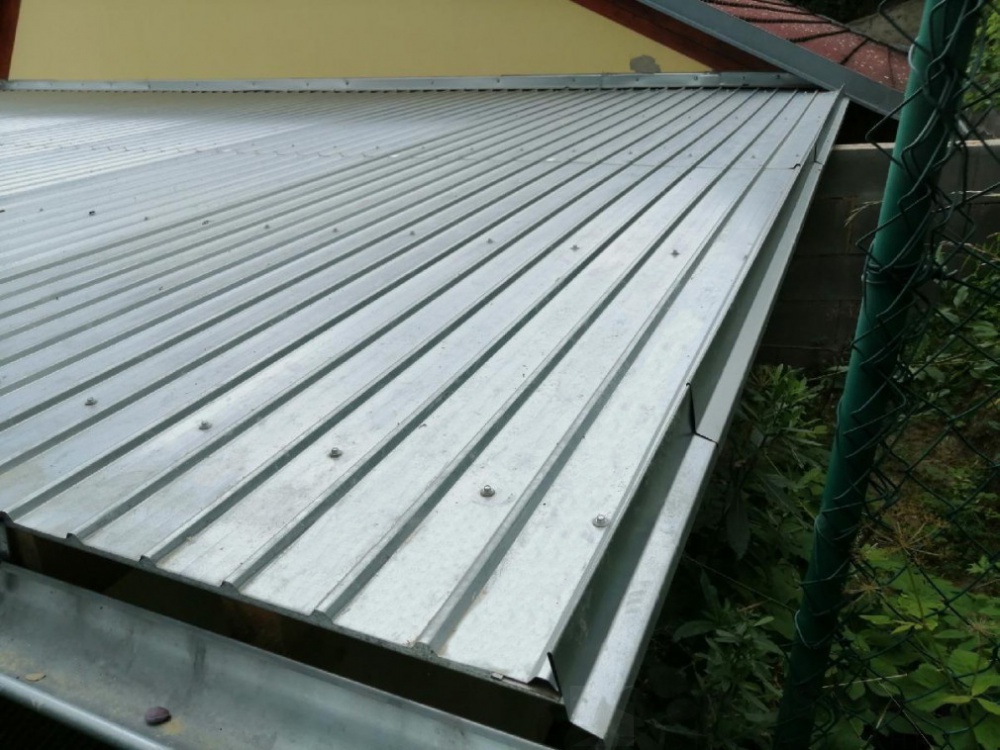 Trapézový plech T-12. Dodává se v provedení pozink i RAL. Trapézové desky se používají např. pro oplocení či zakrytí jednoduchých přístřešků.