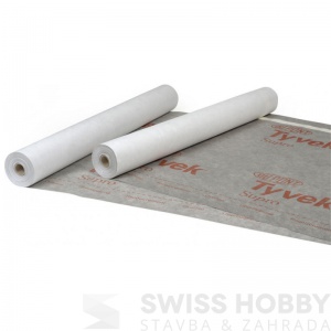 Vysoce difuzní větrotěsná kontaktní membrána opatřena integrovanou lepicí páskou.