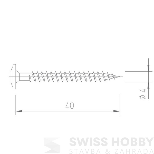 Upevňovací vrut V5143 - 4x40 mm - nerez A2, drážka Torx