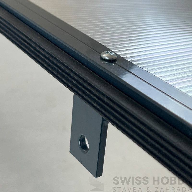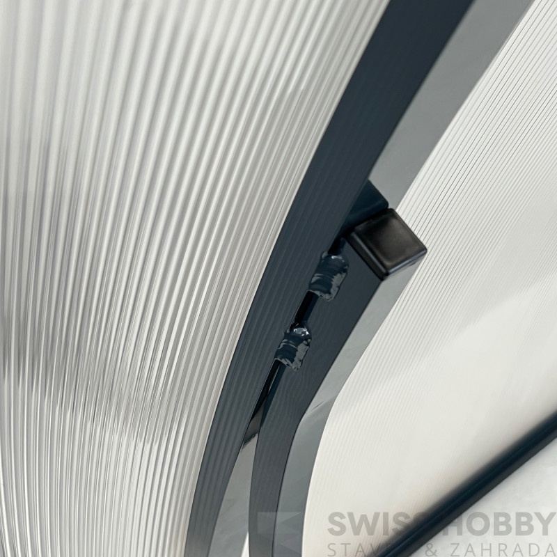Masivní stříška nad vchodové dveře. Stříšku tvoří hliníková konstrukce a dutinkový 6 mm polykarbonát. Vyniká robustním designem a snadnou montáží. Dostupná ve 3 barevných variantách