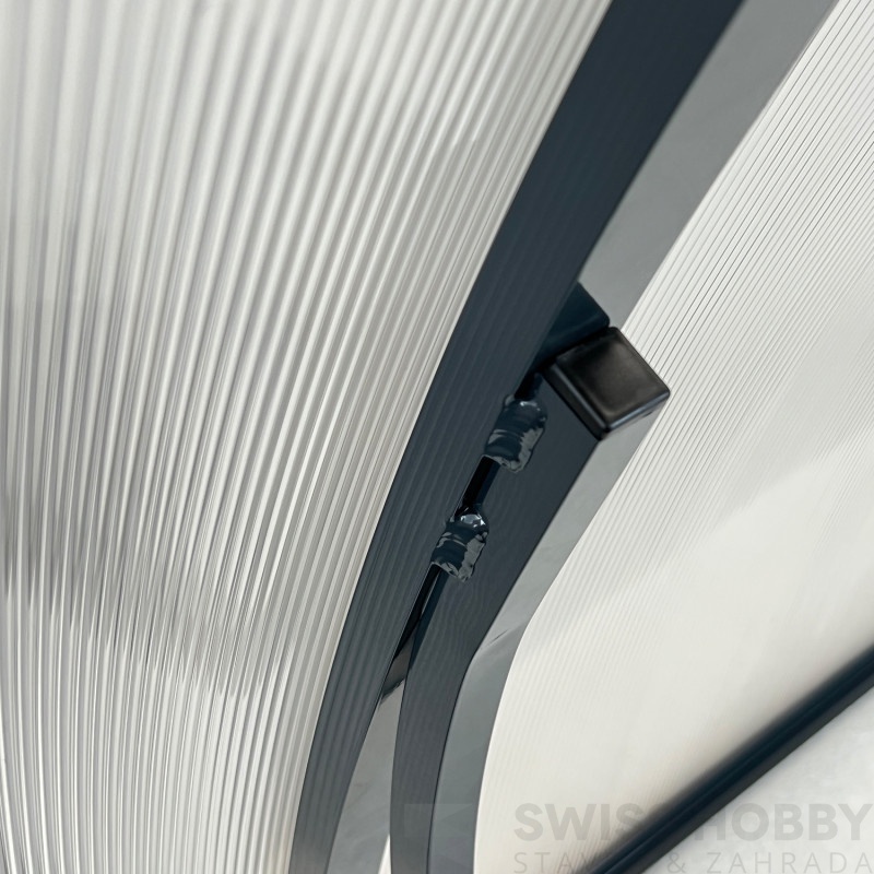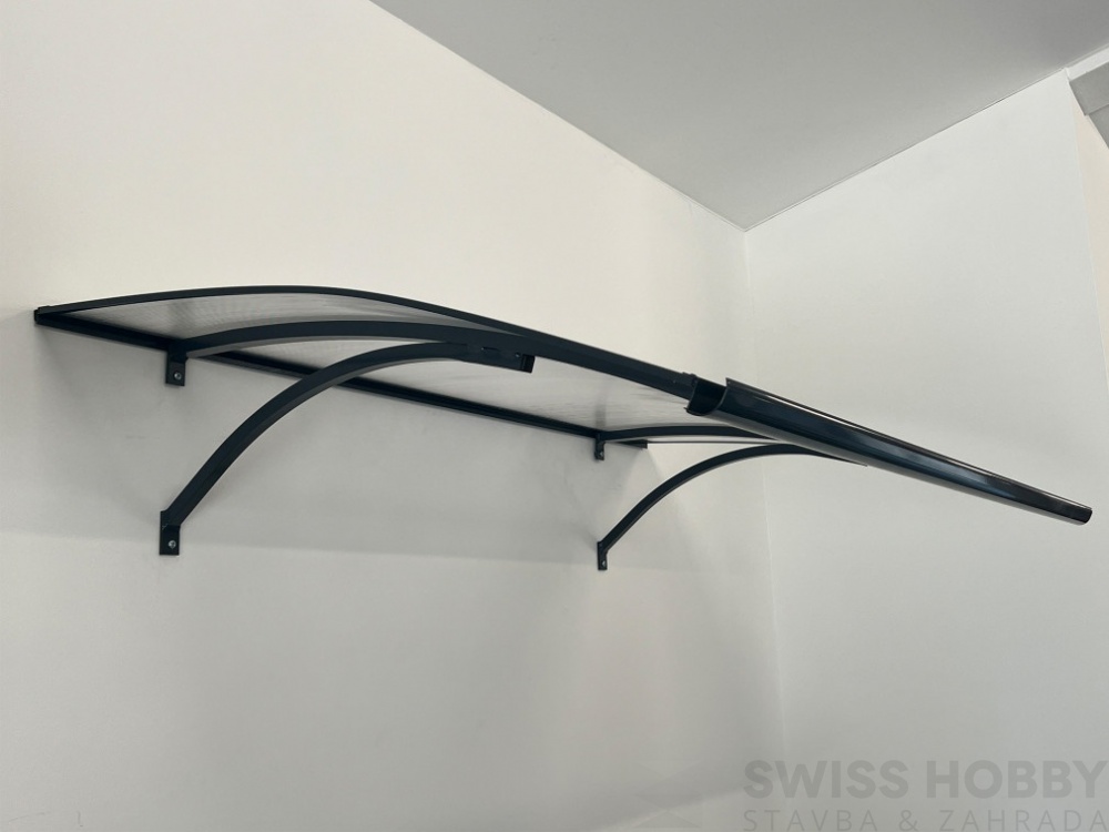 Masivní stříška nad vchodové dveře. Stříšku tvoří hliníková konstrukce a dutinkový 6 mm polykarbonát. Vyniká robustním designem a snadnou montáží. Dostupná ve 3 barevných variantách