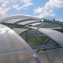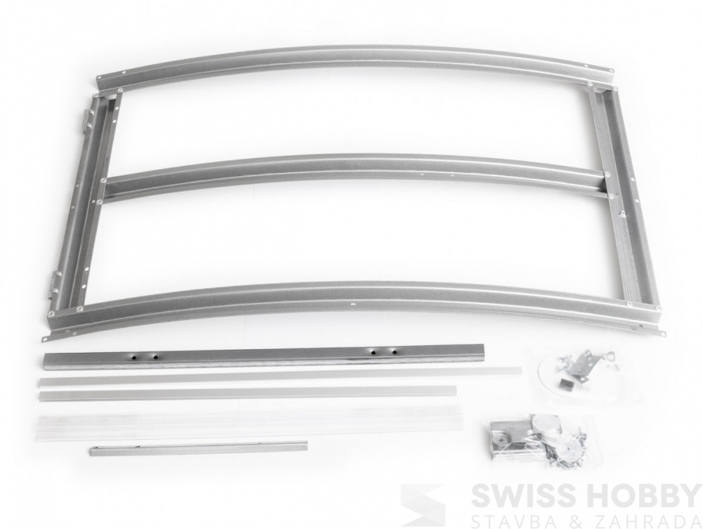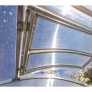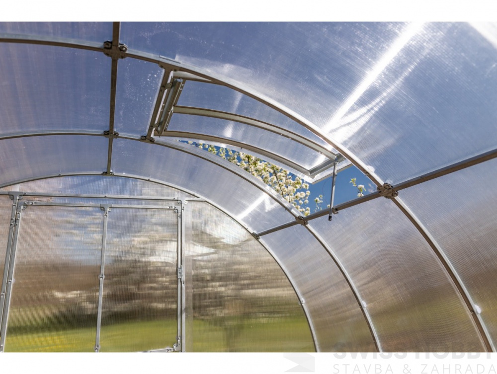 Střešní větrací okno pro jeklový zahradní skleník z polykarbonátu Gardentec Classic T. Rám okna je vyroben z profilované pozink. oceli.