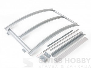 Střešní větrací okno pro odolný obloukový zahradní skleník Gardentec Classic z polykarbonátu. Rám okna je vyroben stejně jako celý skleník z profilované pozink. oceli.
