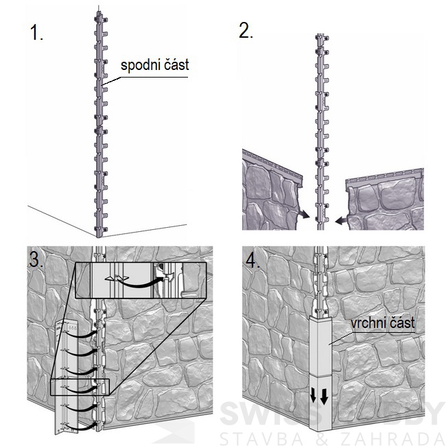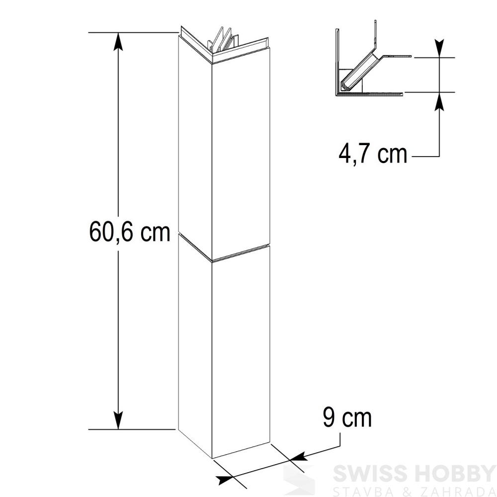 Dvoudílný vnější rohový profil NOVIK STONE RU202 slouží k estetickému a funkčnímu zakončení rohů budov při instalaci fasádních obkladů řady NOVIK FIELD STONE.